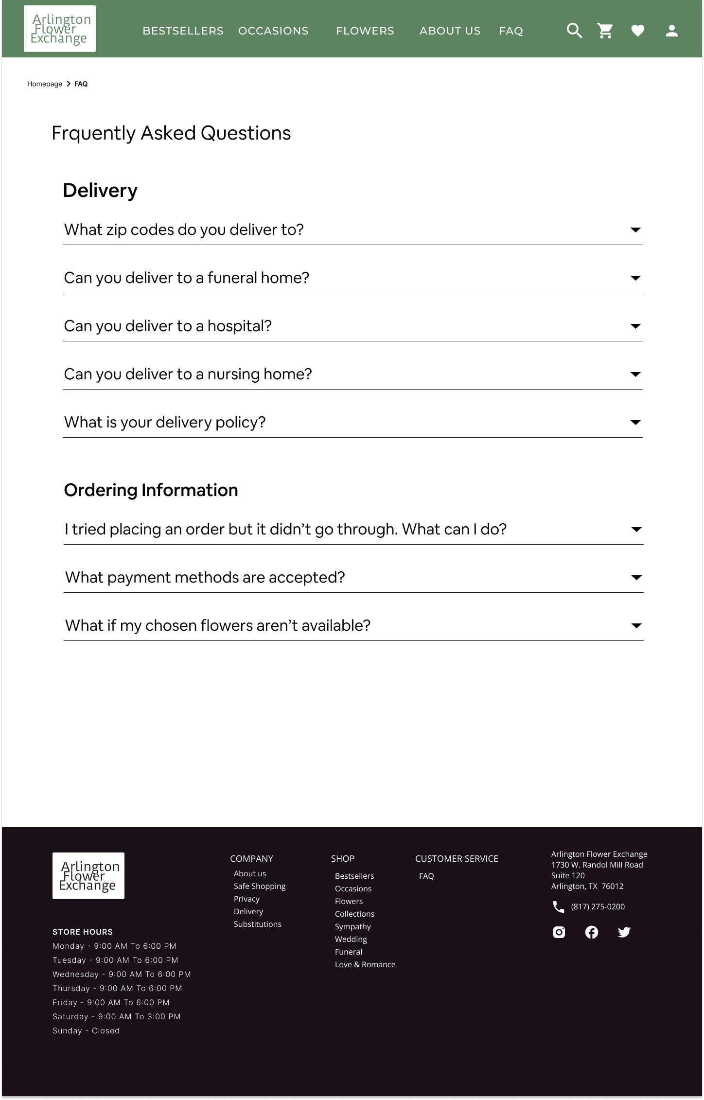 The Flower Exchange is a family-owned floral business that serves the North Texas area. Just looking at the businesses’ google reviews, customer service and quality arrangements are why customers keep coming back. Essentially for almost any occasion, the Flower Exchange is truly there to fulfill the needs of their customers. With a wide age range of customers, orders come in through a mix of phone calls, often from older folks, and through online orders, usually from people under 40. Though the Flower Exchange is known for its quality arrangements and customer service via Google reviews and word-of-mouth, its website could do a better job of reflecting that information. The website’s aesthetics are not cohesive either and could use some adjustments to reflect the friendliness of the business’ brand.